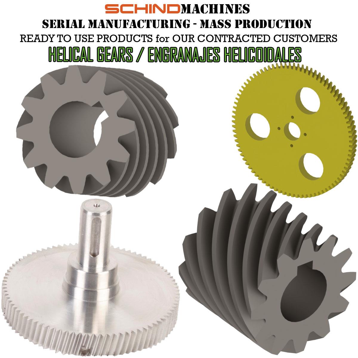Los engranajes helicoidales son engranajes cilíndricos con dientes de ángulo oblicuo. Debido a su mayor superficie de contacto, pueden transmitir más potencia que los engranajes rectos. Los engranajes helicoidales se prefieren por su rendimiento superior en términos de durabilidad, menor vibración y menor margen de error en mecatrónica. Se clasifican como helicoidales izquierdos o derechos según la dirección de los dientes. Fabricamos todo tipo de juegos de engranajes helicoidales en nuestras máquinas CNC de precisión.