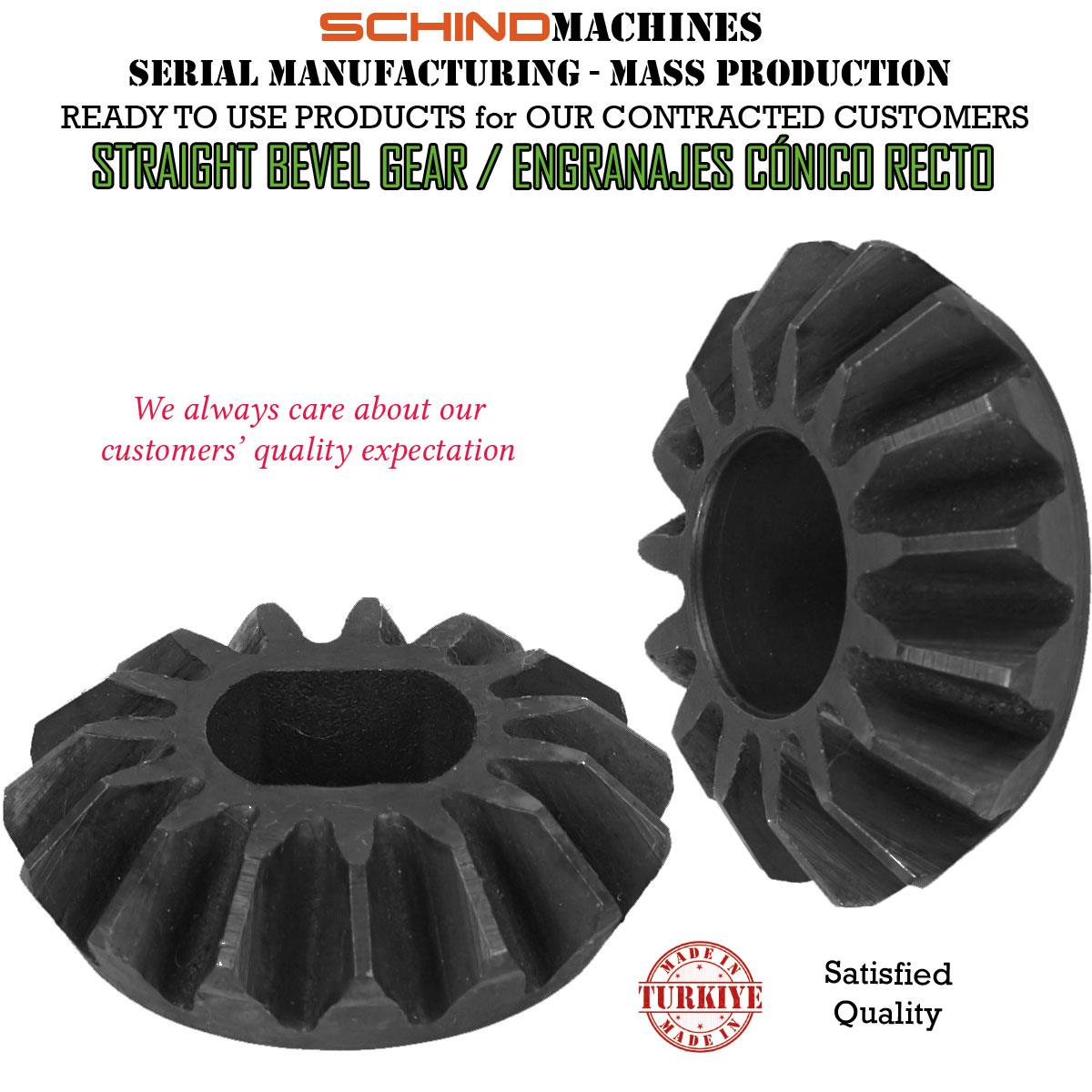 Los engranajes cónicos rectos tienen dientes rectos y se utilizan cuando dos ejes forman un ángulo de 90° para transmitir potencia. Los diferenciales, las transmisiones y los ejes son algunos ejemplos de sistemas mecánicos donde dos ejes no paralelos transmiten movimiento rotacional. Fabricamos engranajes cónicos rectos utilizados en maquinaria y repuestos para automóviles.