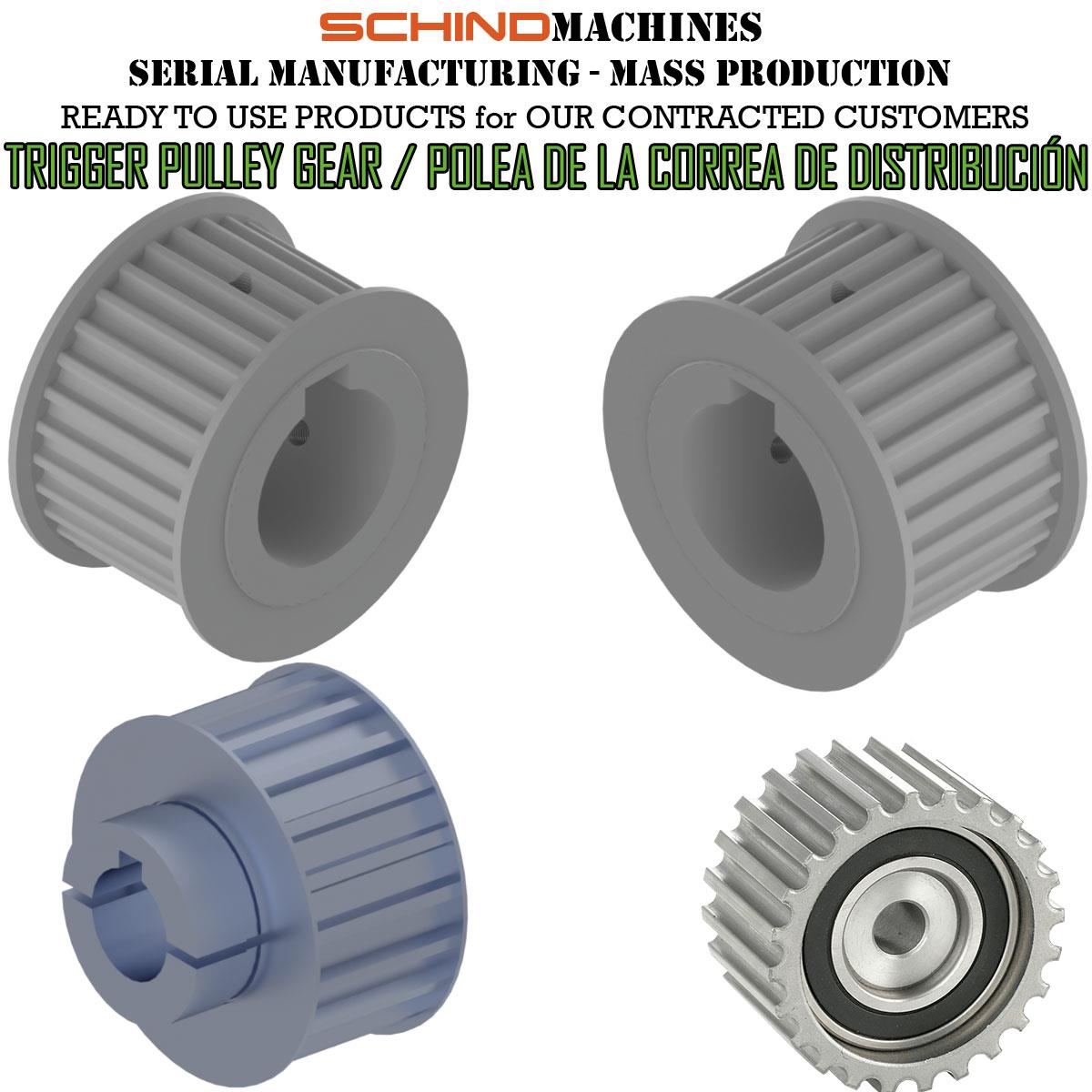 Los sistemas de poleas y engranajes de disparo se utilizan para posicionar con precisión la potencia que se va a transmitir. El engranaje de sincronización no se utiliza para transmitir par de torsión; se utiliza para posicionar información y sincronizar el movimiento en la automatización. Debido a que la polea de disparo y los dientes de la correa encajan perfectamente, evitan el deslizamiento. La correa y la polea de disparo son un componente mecánico indispensable para el posicionamiento preciso de los movimientos de los servomotores/motores paso a paso.